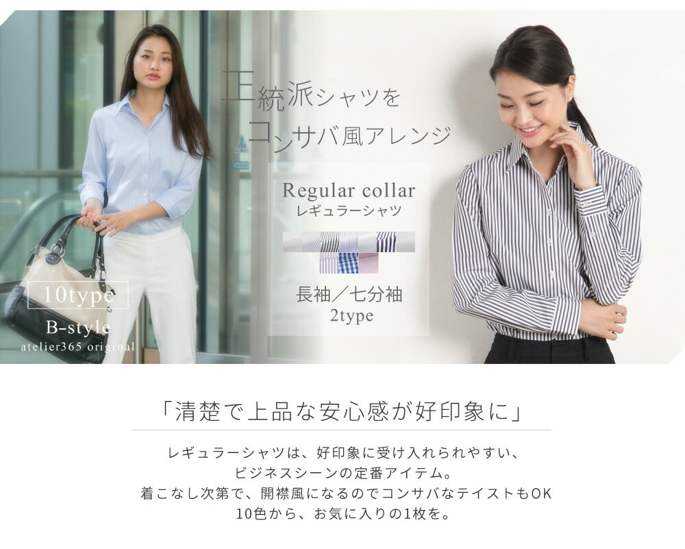 サイズ レギュラー襟/長袖・七分袖 ◆ S/M/L/LL/3L ポケット なし カフス カフスボタン対応 なし 伸縮性 伸縮性なし 備考 イージーケア キーワード 【シャツ】【ブラウス】【ワイシャツ】【ビジネス】【レディース】【制服】選べる開襟シャツ20タイプ。